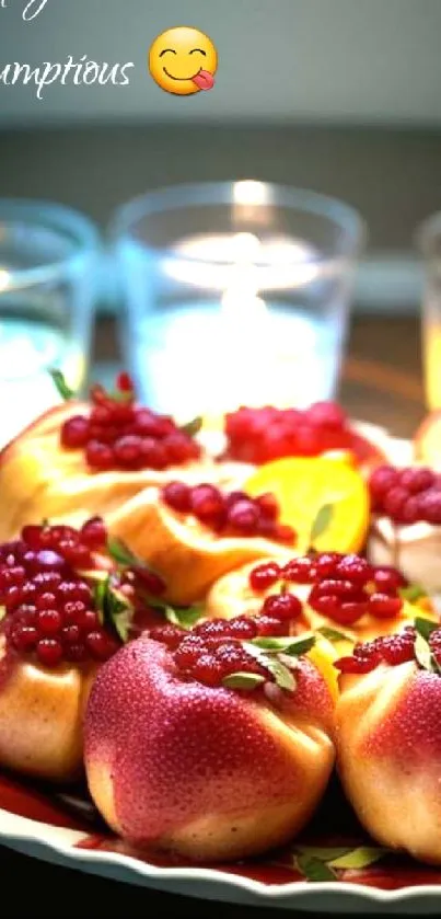 Discover the enticing beauty of colorful fruit pastries surrounded by glowing candles, perfect for your mobile wallpaper display