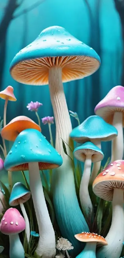 Explore a whimsical forest with vibrant, colorful mushrooms in this captivating mobile wallpaper, ideal for adding an enchanting touch to your screen
