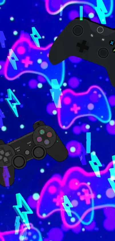 Download this vibrant gaming wallpaper featuring neon controllers and electric patterns perfect for gamers