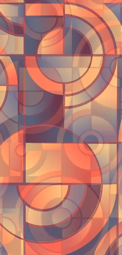 Enhance your mobile with a vibrant geometric art wallpaper featuring warm, circular patterns in orange, blue, and cream tones. Ideal for those seeking a modern and artistic look for their device background, this design combines abstract elements with a rich color palette