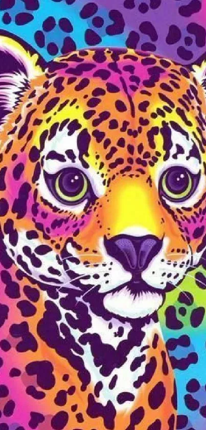 Add a pop of color to your device with this vibrant leopard art wallpaper, featuring a psychedelic blend of purple, pink, and blue hues, perfect for animal and art lovers alike