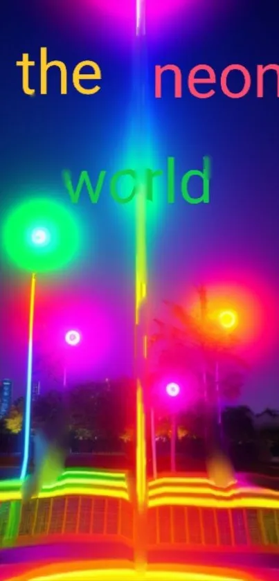 Explore a vivid neon cityscape with colorful lights illuminating the night sky, perfect for adding a burst of color and energy to your mobile screen