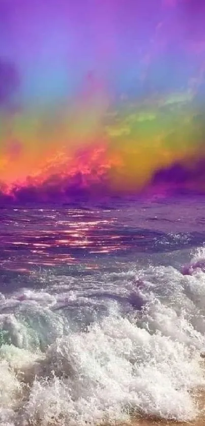 Explore a mesmerizing blend of vibrant aurora lights over a tranquil ocean scene, perfect for elevating your mobile screens with a burst of color and tranquility