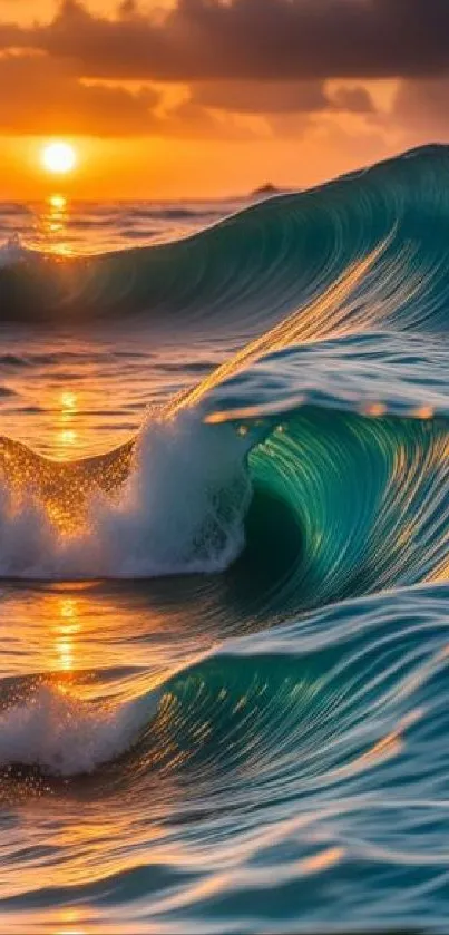 Experience the beauty of golden sunset waves with this stunning ocean wallpaper, perfect for your mobile