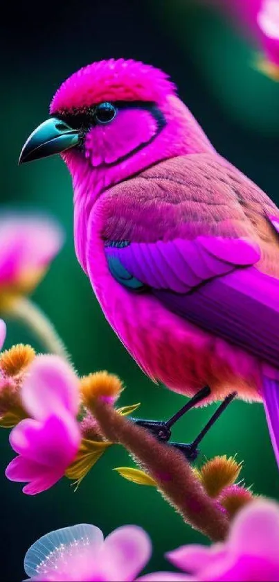 Brighten your phone screen with this vibrant pink bird perched among florid blossoms, creating a lively and colorful aesthetic