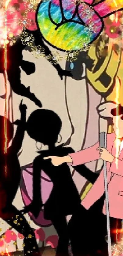 Explore a vibrant pop art mural wallpaper featuring colorful cartoon characters on a city wall, perfect for adding an artistic touch to your mobile screen