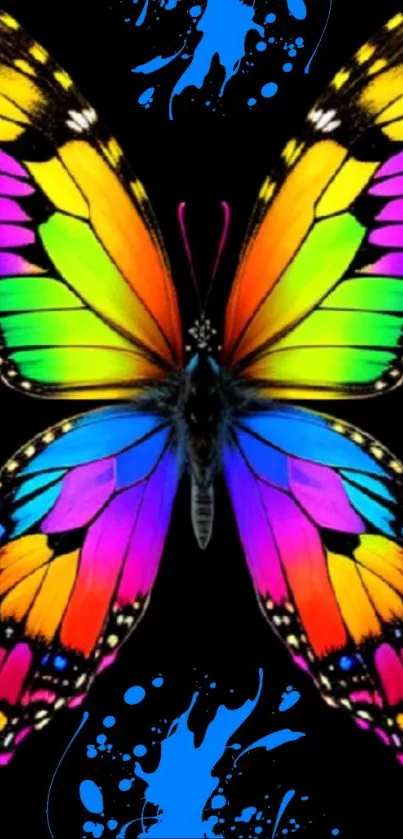 Download this vibrant rainbow butterfly mobile wallpaper, featuring colorful wings and splatter effects, perfect for adding a splash of color and uniqueness to your phone's screen