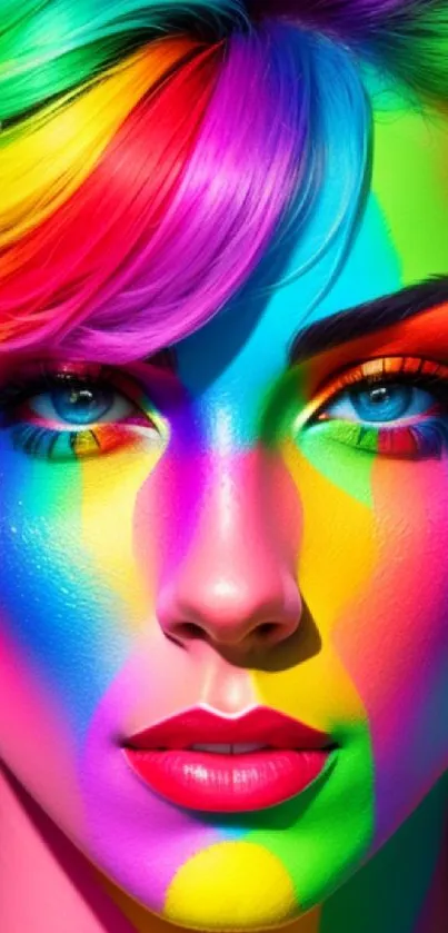 Discover a captivating mobile wallpaper featuring a vibrant rainbow face art design, perfect for adding a splash of color to your phone. The colorful gradient creates a striking visual effect, blending innovation with creativity