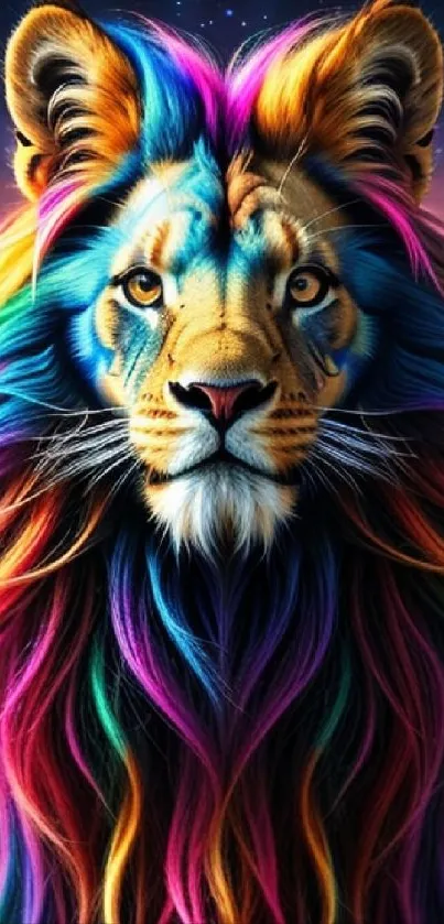 Discover a stunning mobile wallpaper featuring a majestic lion with a vibrant rainbow mane, perfect for adding color and wildlife elegance to your device