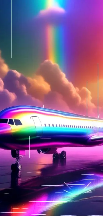 Experience a vibrant rainbow airplane soaring through colorful skies, perfect for your mobile wallpaper