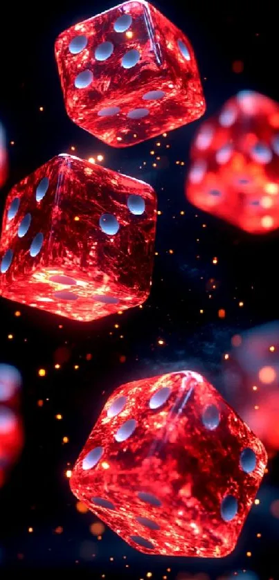 Enhance your phone's look with this vibrant red dice wallpaper, featuring shimmering dice in motion. Perfect for gaming enthusiasts