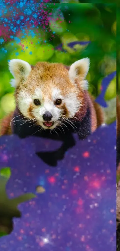 Explore the vibrant contrast of a red panda amid a galaxy background, adding a unique blend of nature and cosmic beauty to your mobile screen. Perfect for animal lovers and stargazers alike