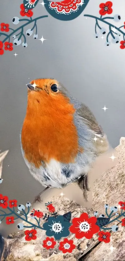 Discover the vibrant beauty of a robin perched on a rustic log, perfect for nature lovers seeking tranquil mobile phone wallpapers
