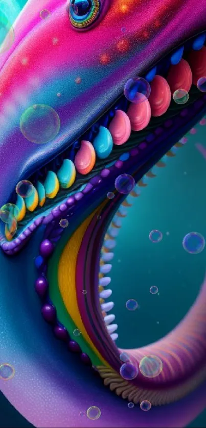 Transform your screen with a vibrant surreal creature wallpaper, showcasing colorful abstract art and vivid oceanic design elements, perfect for mobile devices
