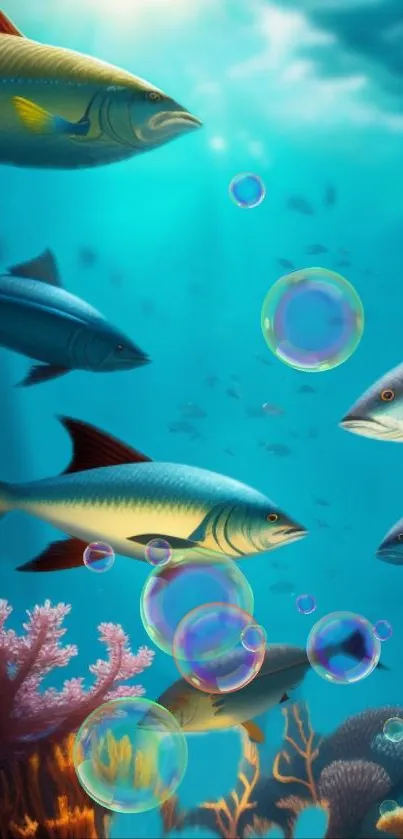 Explore the vibrant underwater ocean scene featuring colorful fish, coral reefs, and playful bubbles, perfect for bringing a serene aquatic ambiance to your mobile screen