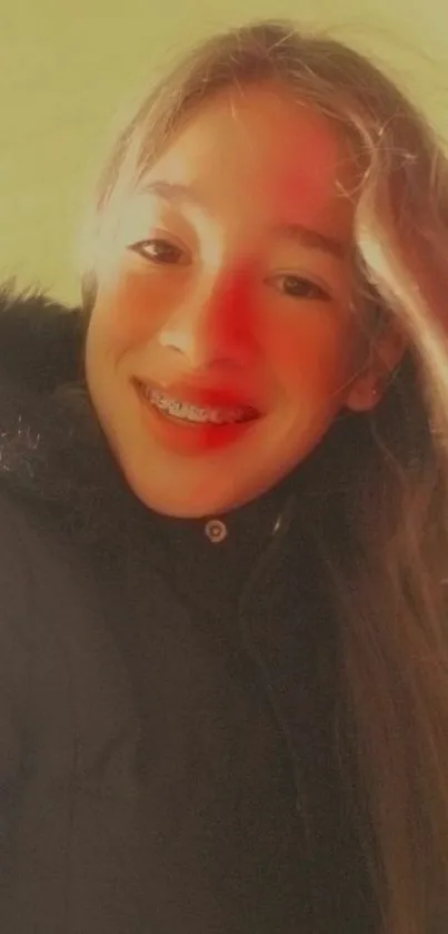 Enhance your phone's screen with a warm and inviting portrait wallpaper featuring a smiling person in soft golden hues, perfect for creating a cozy ambiance. Ideal for personalizing mobile devices with a touch of warmth and an inviting aesthetic