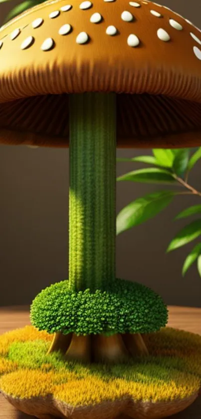 Explore a vibrant, 3D-rendered mushroom in this whimsical wallpaper, perfect for nature and art enthusiasts seeking a unique, artistic phone background