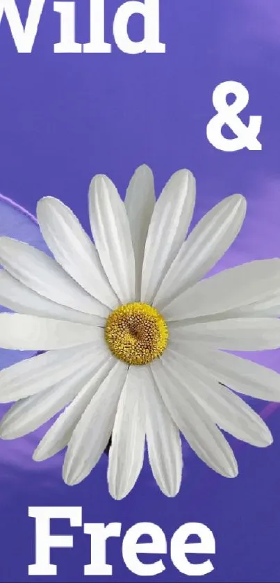 Enhance your mobile screen with this "Wild & Free" wallpaper featuring a vibrant daisy on a serene purple background, perfect for a fresh and calming look